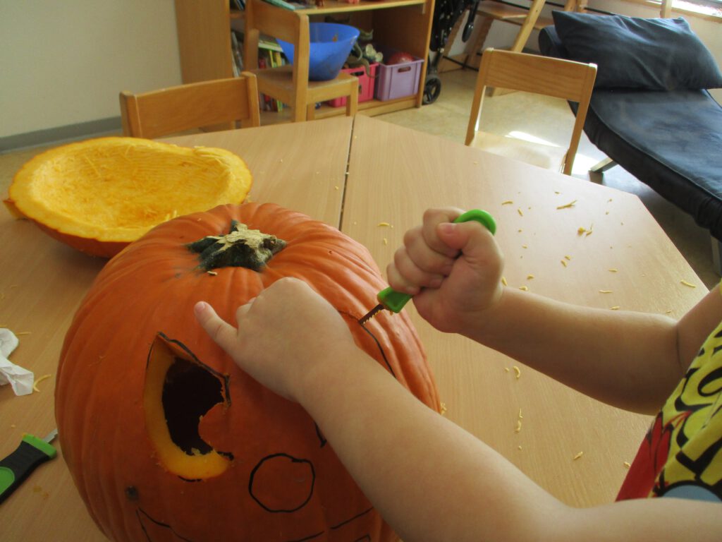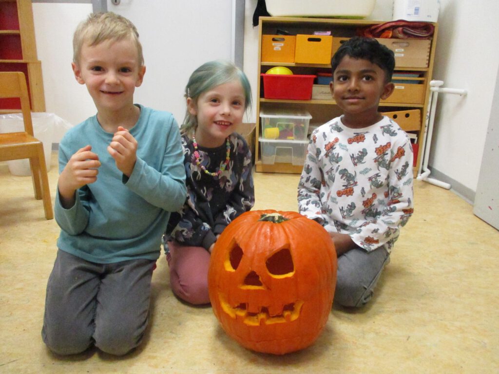 Die Kinder der Kita Pusteblume haben in der Woche vor Halloween Kürbisse geschnitzt.