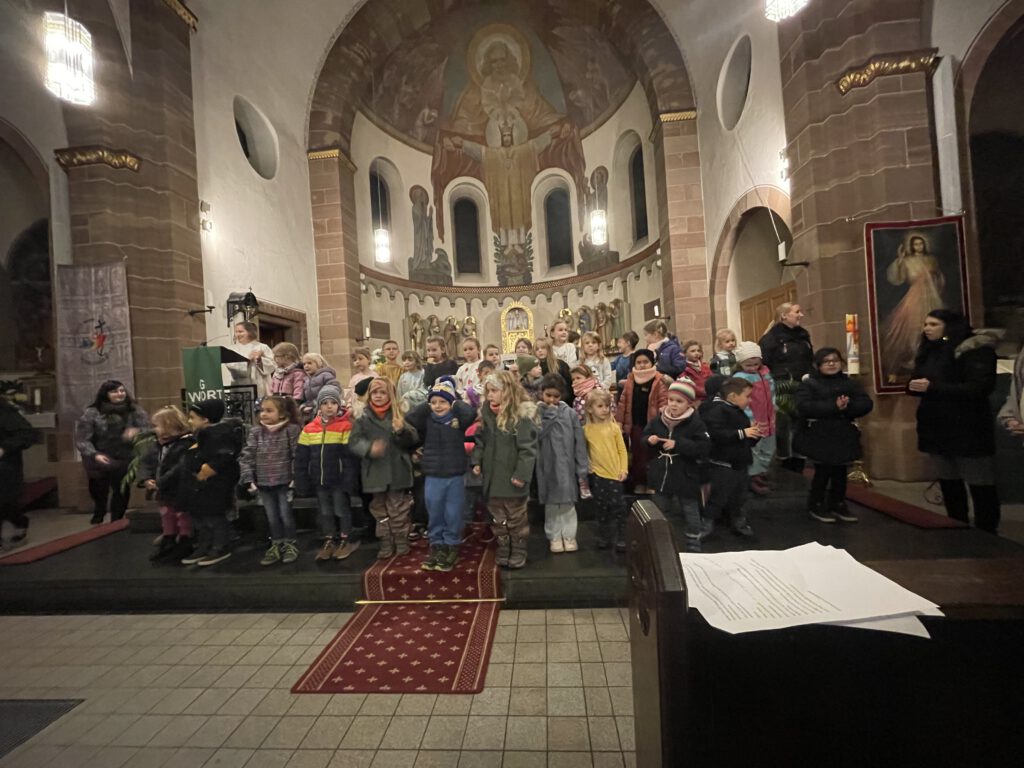 Am Montag, den 10. November 2025, fand in Fischbach unser diesjähriger Martinsumzug statt. Schon in der katholischen Kirche wurde deutlich, mit wie viel Freude und Engagement die Kinder diesen besonderen Tag mitgestaltet hatten. Die Raupenkinder verzauberten alle mit ihrem liebevoll einstudierten Laternentanz, während die Schmetterlingsgruppe die Geschichte von St. Martin lebendig werden ließ.