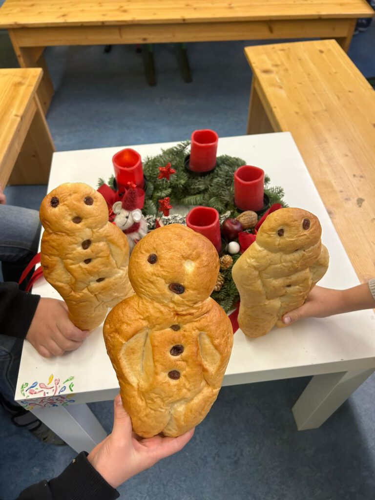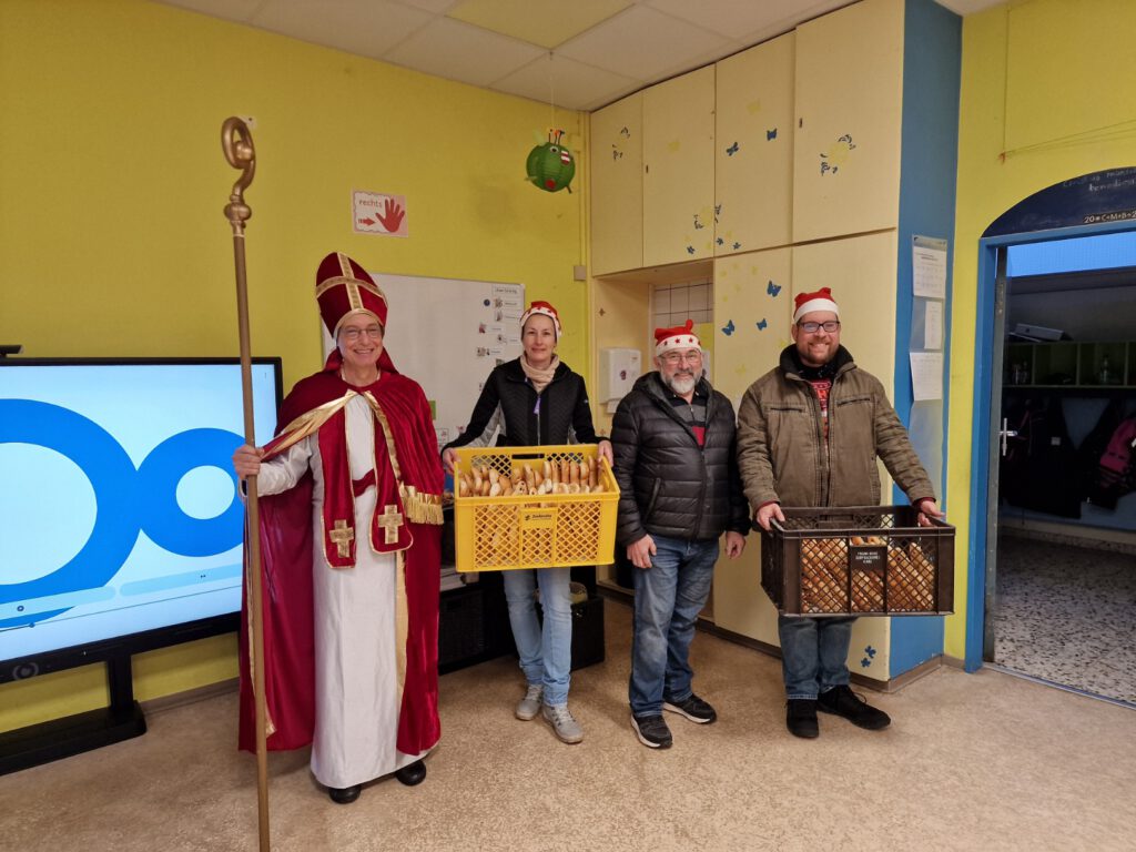 Natürlich kam auch der Nikolaus nicht mit leeren Händen und brachte für jedes Kind einen Weckmann mit – ein großes Dankeschön an die Fördervereine, durch deren Unterstützung diese tolle Aktion wieder möglich gemacht wurde!