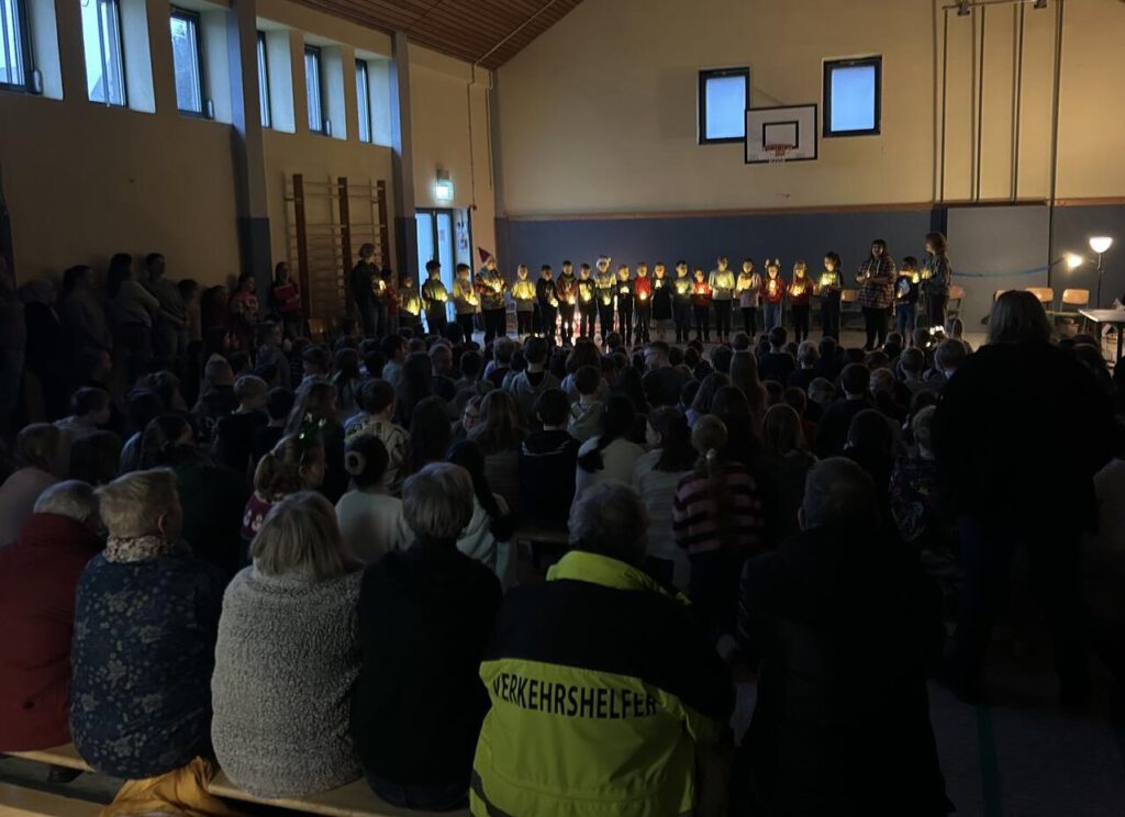 Die Feier begann mit einer eindrucksvollen Bodypercussion zum „Nussknacker“, präsentiert von den vierten Klassen. Danach sorgte die Klasse 2.3 mit ihrem fröhlichen Plätzchenlied für vorweihnachtliche Stimmung. Besonders stimmungsvoll wurde es beim Lichtertanz der Klasse 2.1, dessen leuchtende Darbietung das Publikum begeisterte. Anschließend zeigten die dritten Klassen ihr eingeübtes Nikolauslied, das die Zuhörer zum Mitsingen einlud.