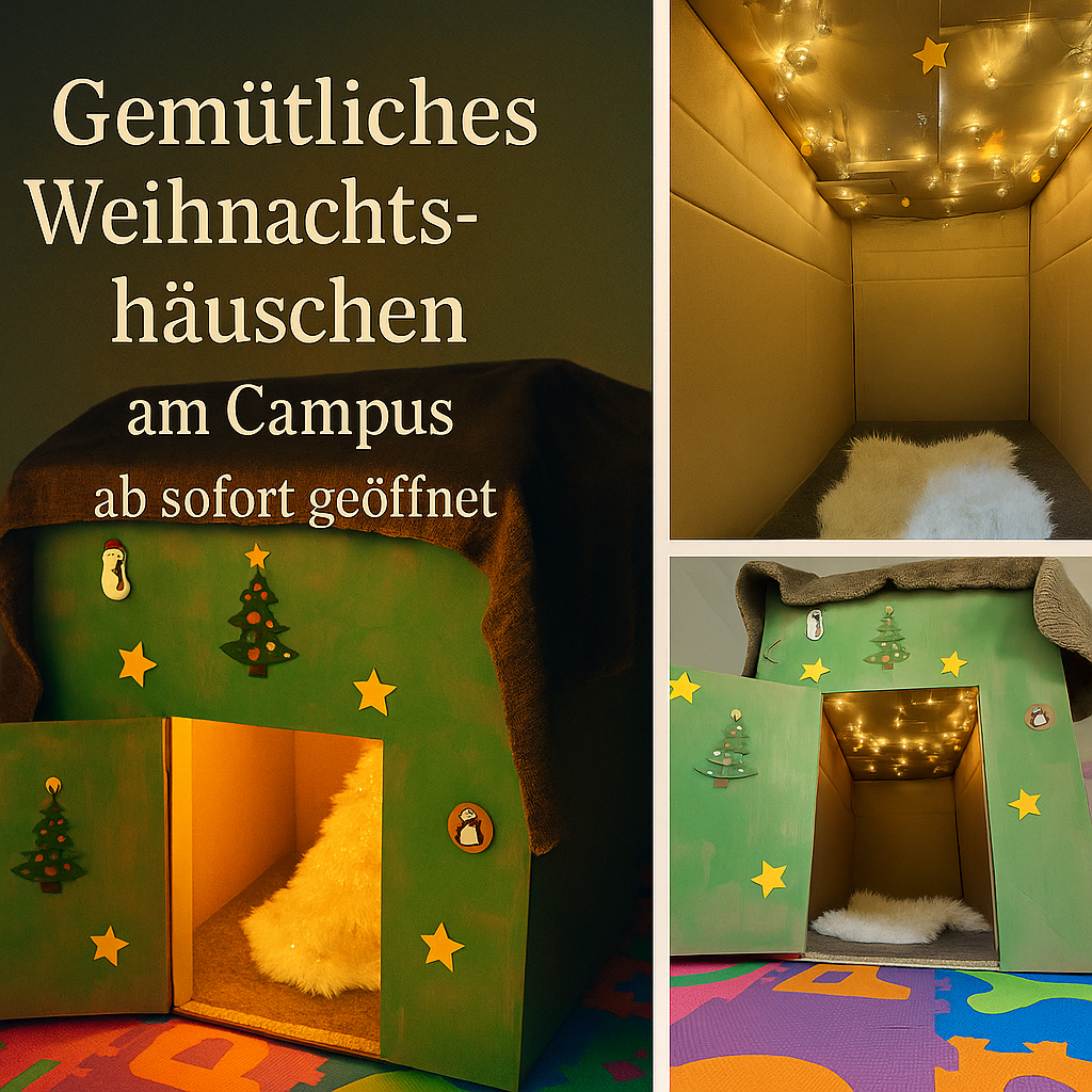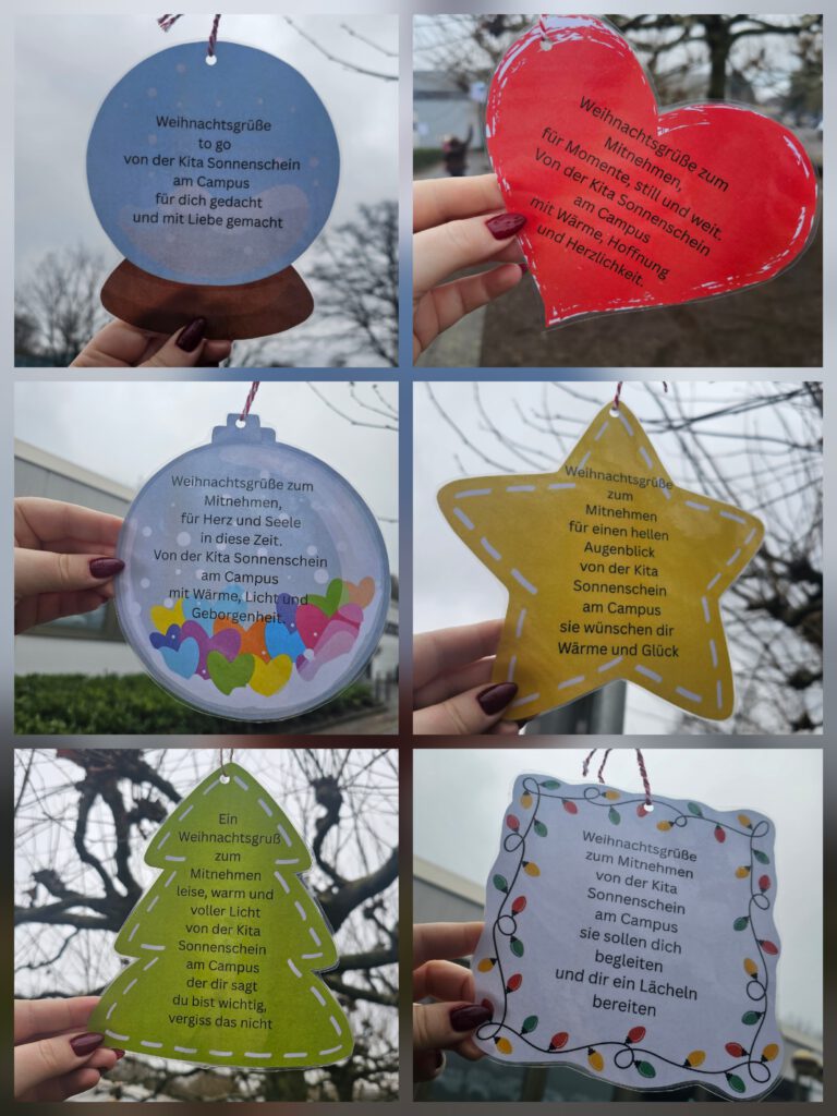 Bei einem gemeinsamen Frühstück im „Campus Bistro“ wurde der neue Standort feierlich eingeweiht. Als kleines Highlight des Tages hängten die Kinder Weihnachtsgrüße für vorbeigehende Spaziergänger auf, um die festliche Stimmung auch nach außen zu tragen.