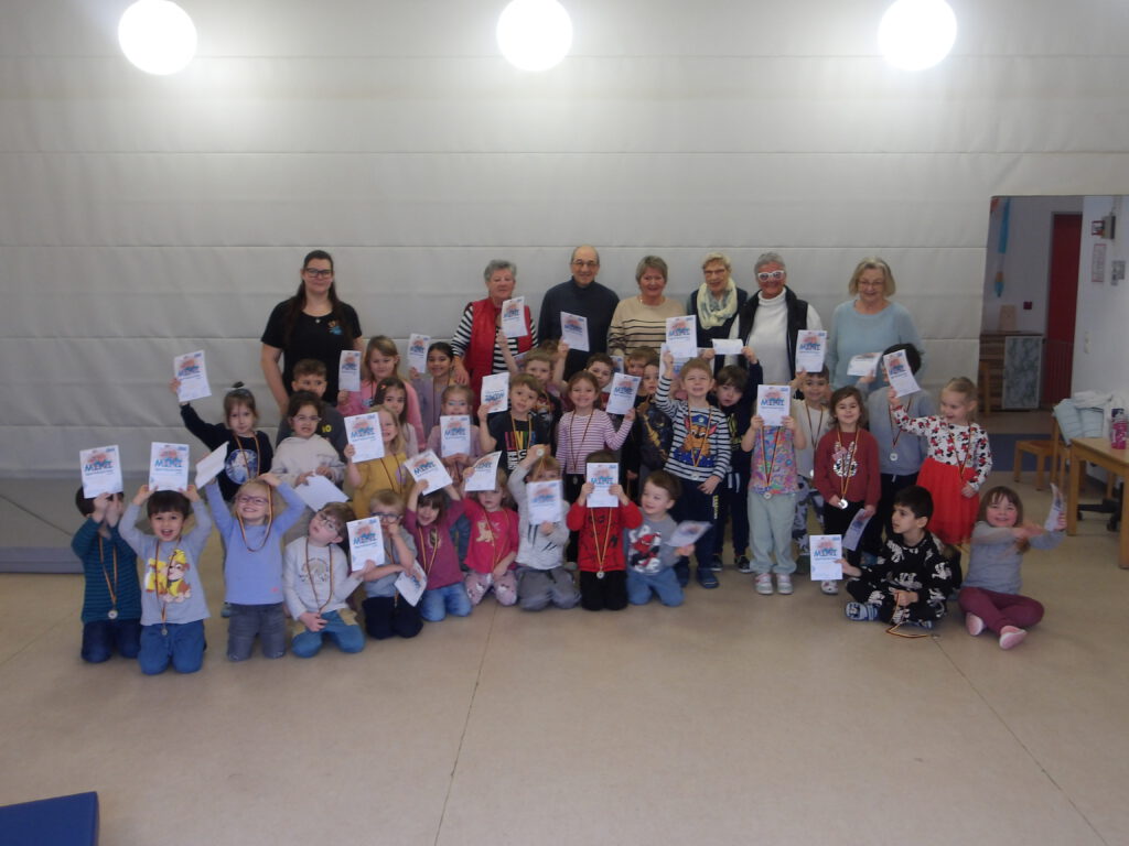 Besonders hervorzuheben ist der Mut der Kinder, denn ALLE haben die Stationen erfolgreich gemeistert. Dies wurde natürlich auch belohnt: Am 14.01.2026 war die offizielle Siegerehrung in der Villa Regenbogen. Zu diesem Anlass waren alle Teamleiter recht herzlich eingeladen, was das ganze Team sehr gefreut hat. In der Turnhalle wurde dann von den Erzieherinnen feierlich eine Urkunde und eine Medaille von einem Übungsleiter an jedes einzelne Kind überreicht. Die Kinder waren sehr aufgeregt und haben sich gleichzeitig sehr gefreut- das Strahlen in den Gesichtern der Kinder konnte man ganz deutlich sehen! Ein absolut gelungenes Ereignis! 🙂