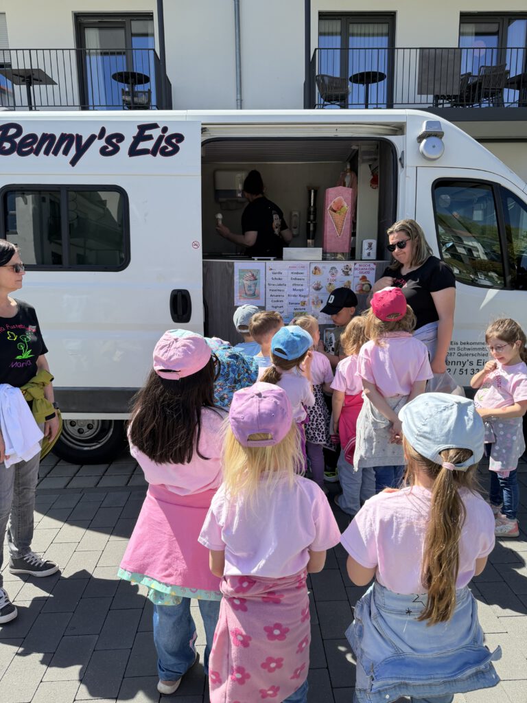 Zum Mittagessen waren alle eingeladen und konnten sich über leckere Rostwürste, Nudelsalat, Brezeln sowie Sprudel und Apfelschorle freuen. Als süßen Abschluss bekam jedes Kind noch eine Kugel Eis spendiert.